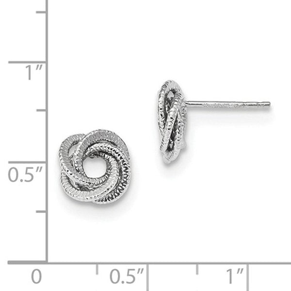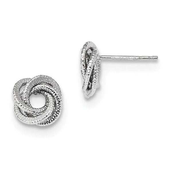 14K White Gold 9mm Polished Classic Love Knot Stud Post and Push Back Stud Earrings.