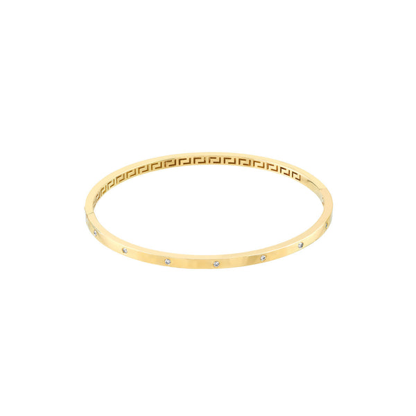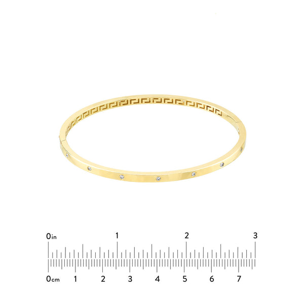 14k Yellow Gold or 14k White Gold Diamond Greek Key Square Tube Hinged Bangle Bracelet