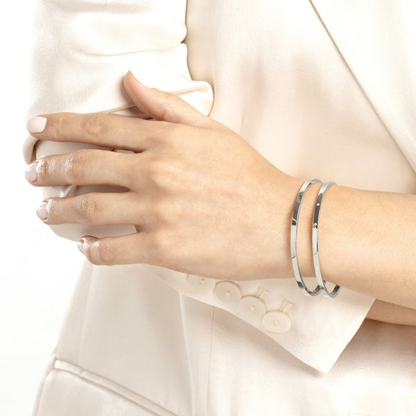 NOTE: This is for One Piece of Bangle Only. Model is wearing 3 of this bangle to create that stacked layered look. Rings are sold separately.