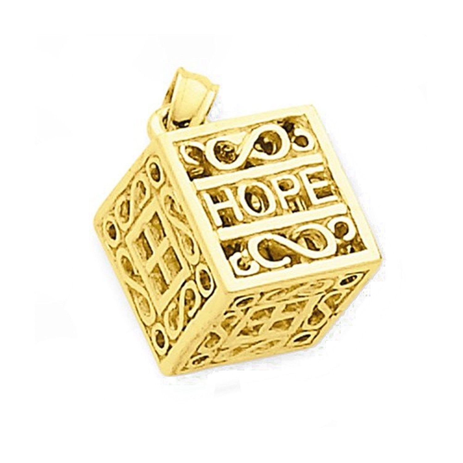 14K Yellow Gold Hope Prayer Box 3D Pendant Charm. Box opens and is hinged.