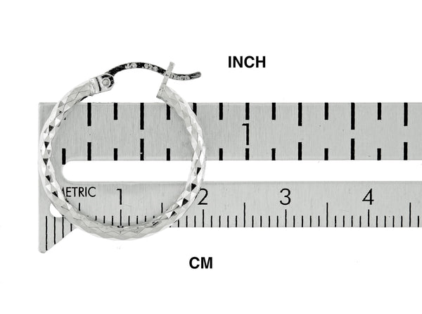 Sterling Silver Diamond Cut Classic Round Hoop Earrings 20mm x 2mm