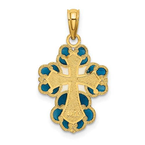 14k Yellow Gold Enamel Blue Red White Cross Pendant Charm