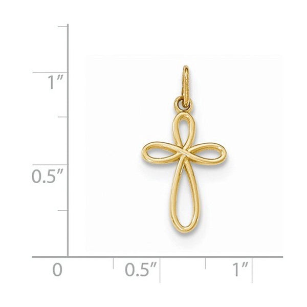 14k Yellow Gold Ribbon Cross Small Pendant Charm