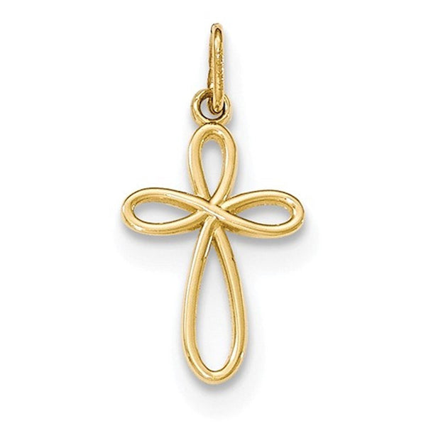 14K Yellow Gold Ribbon Cross Small Pendant Charm.