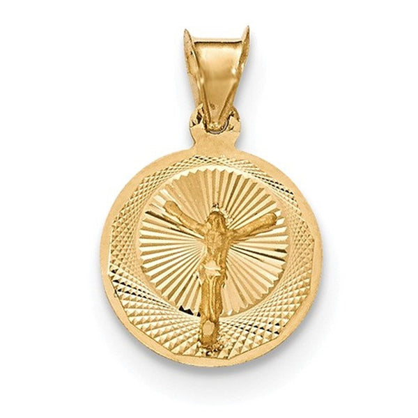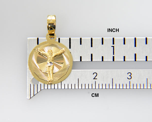 14K Yellow Gold Crucified Corpus Christ Round Small Medal Pendant Charm.