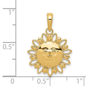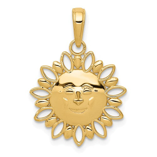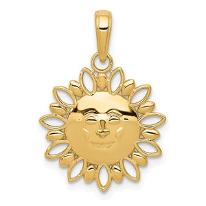 14K Yellow Gold Celestial Smiling Sun Cut Out Pendant Charm