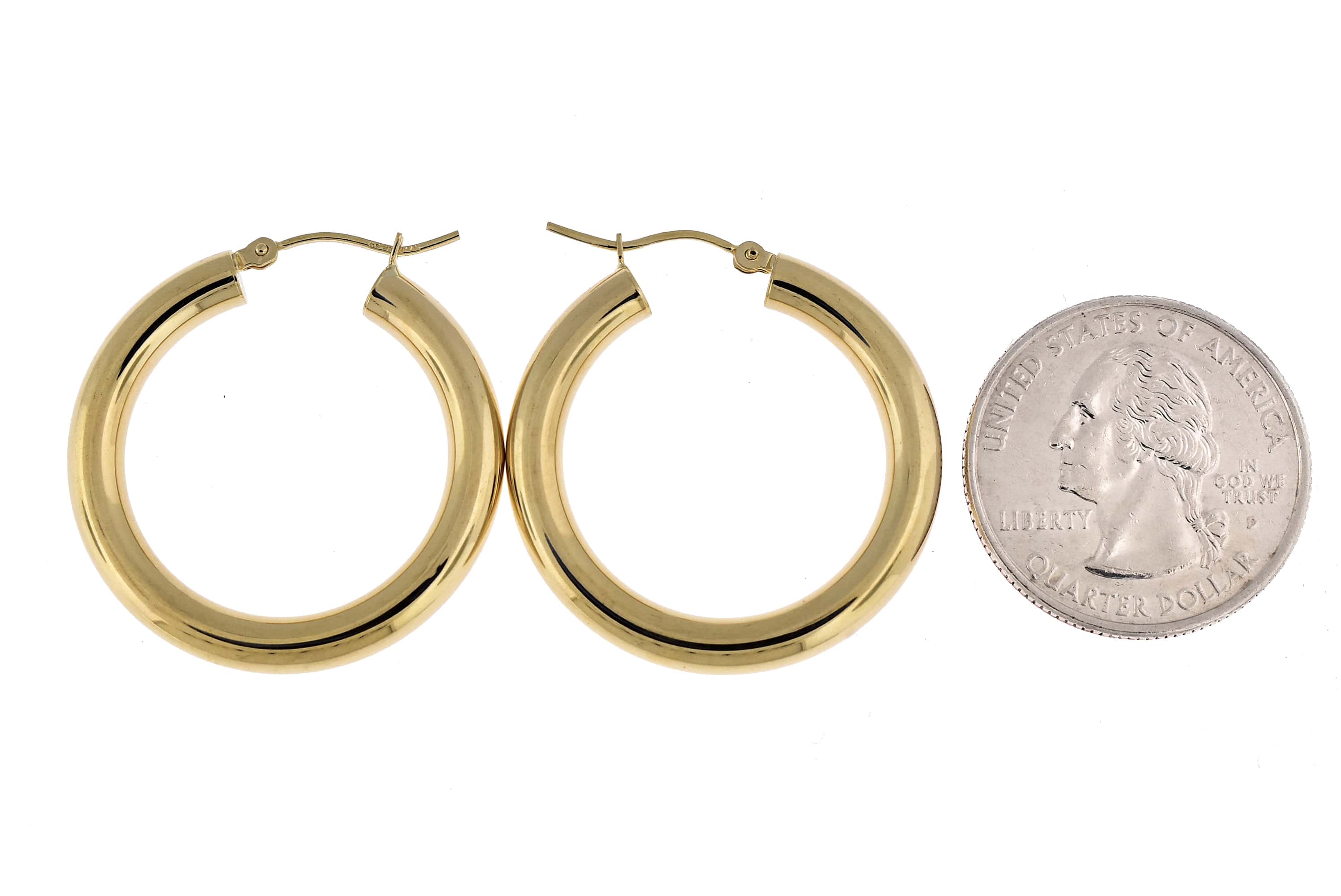 10K Yellow Gold Classic Round Hoop Earrings 30mmx4mm