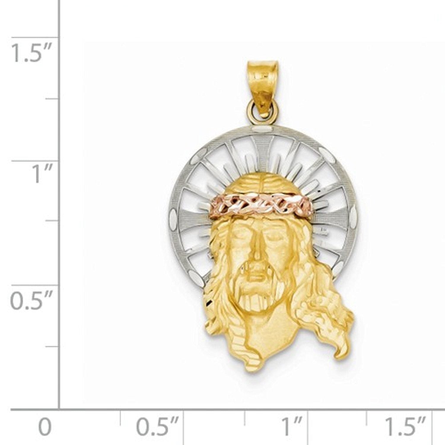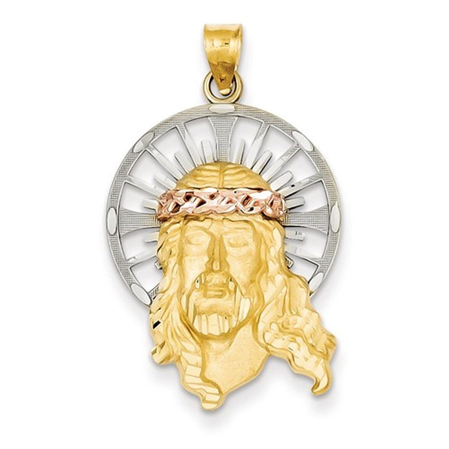 14K Gold Tri Color Jesus Christ Open Back Pendant Charm.
