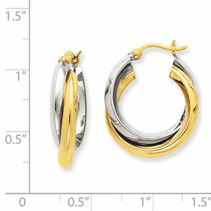 14K Gold Two Tone 21mmx19mmx6mm Modern Contemporary Double Hoop Earrings