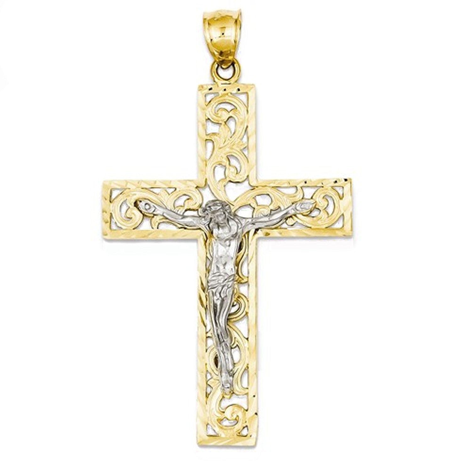 14K Gold Two Tone Crucifix Cross Large Pendant Charm.