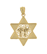 14K Gold Two Tone Star of David with Chai Pendant Charm.