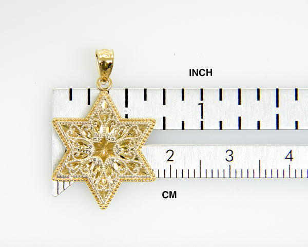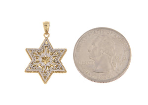 14K Yellow Gold and 14K White Gold Two Tone Filigree Star of David Reversible Pendant Charm.
