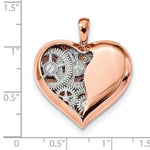 14K Rose Gold and 14K White Gold Two Tone Heart Gear Reversible Pendant Charm.