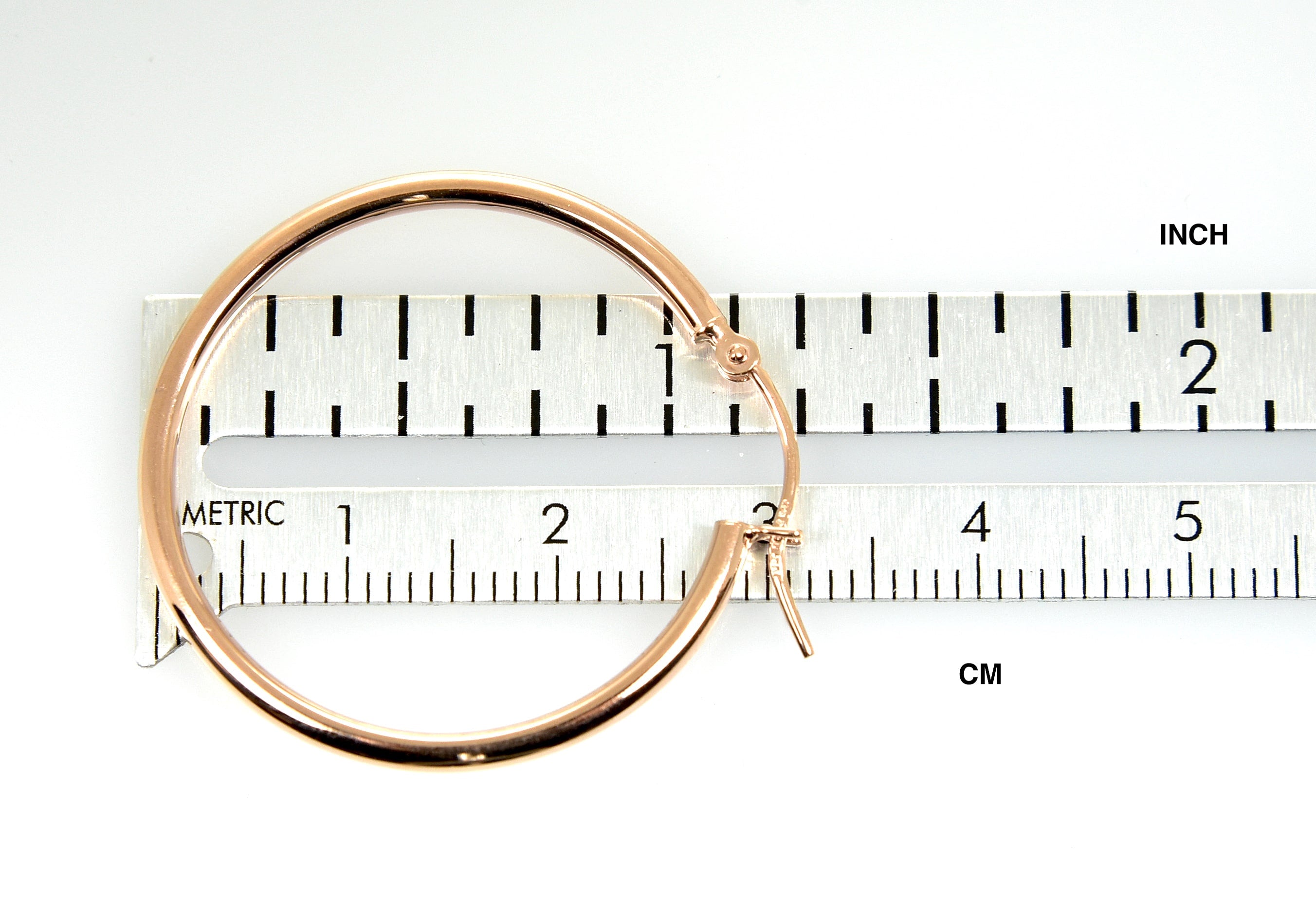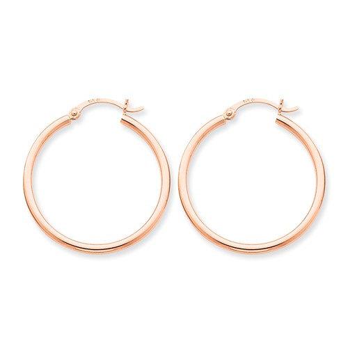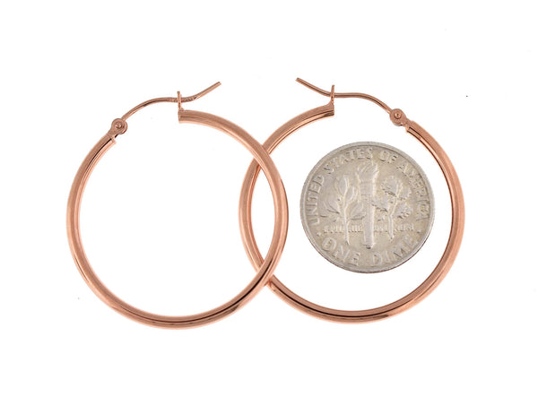 14K Rose Gold 30mm x 2mm Classic Round Hollow Hoop Earrings.