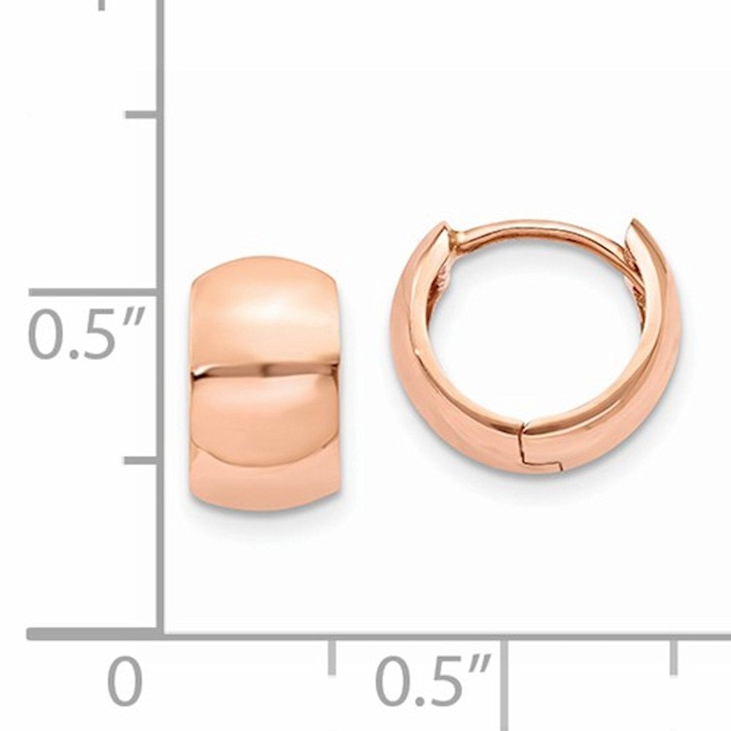 14k Rose Gold Classic Polished Hinged Hoop Huggie Earrings