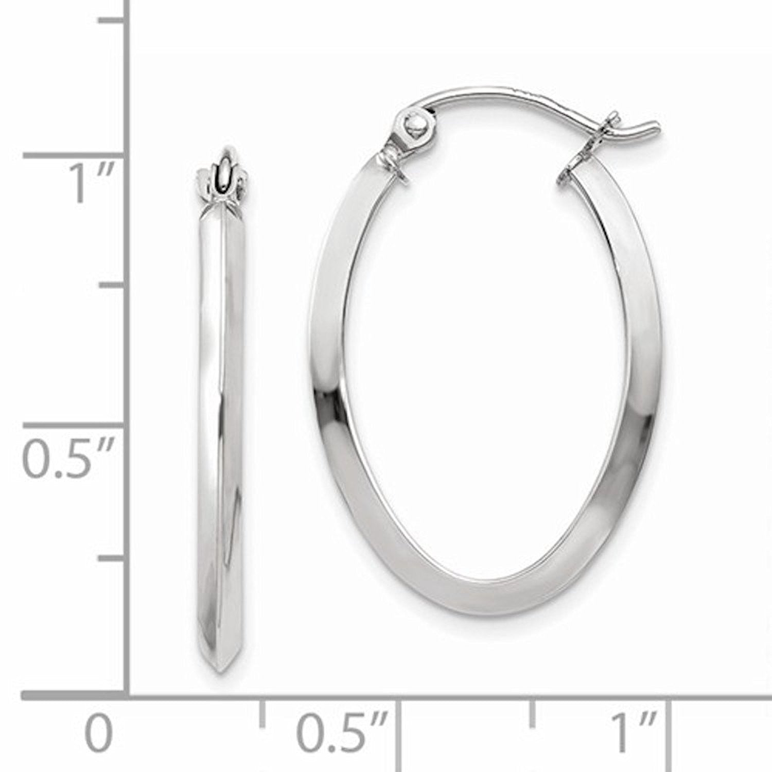 14k White Gold 25mm x 17mm 2mm Oval Hoop Earrings