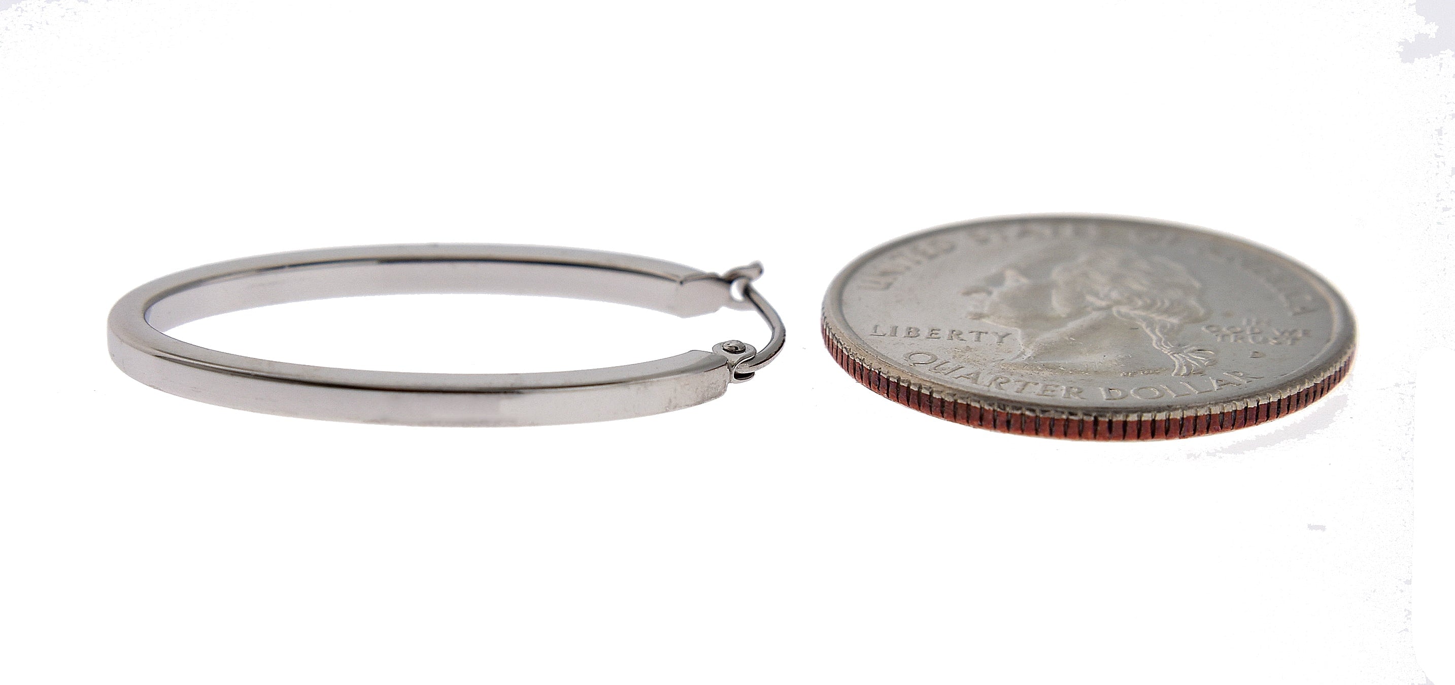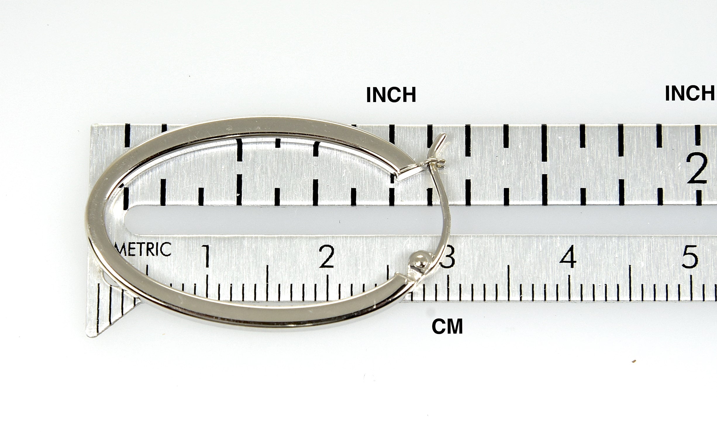 14k White Gold Classic Oval Hoop Earrings.