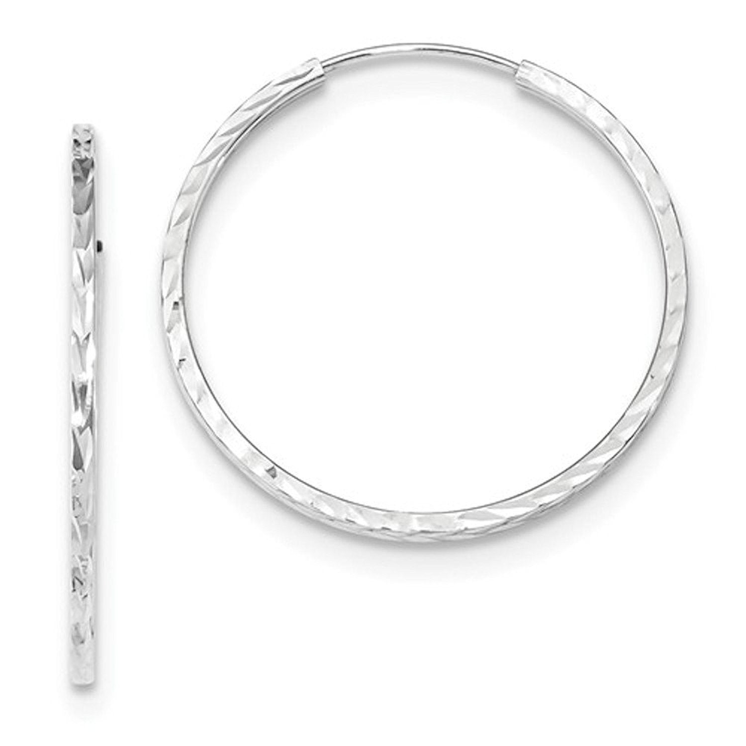 14K White Gold 1.18 inches x 0.05 inch Classic Square Tubes Round Hoop Earrings.