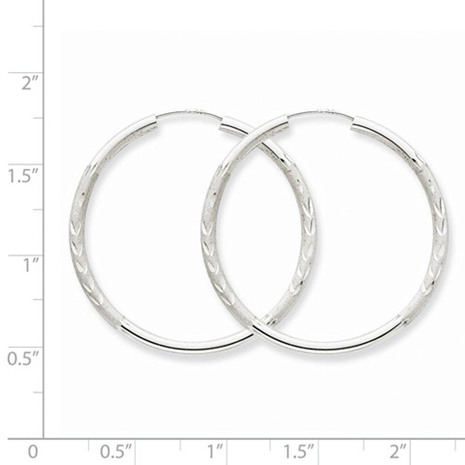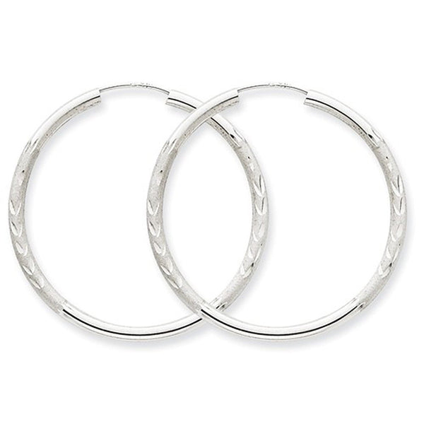 14K White Gold 33mm Satin Textured Round Endless Hoop Earrings