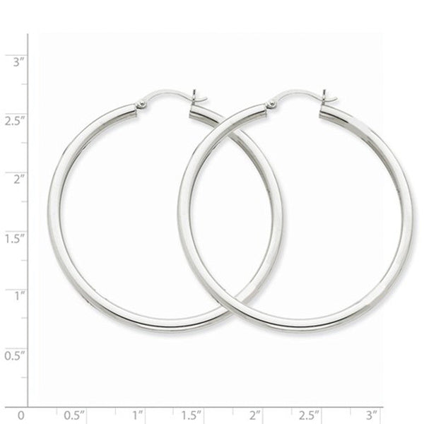 14K White Gold 50mm x 3mm Classic Round Hoop Earrings