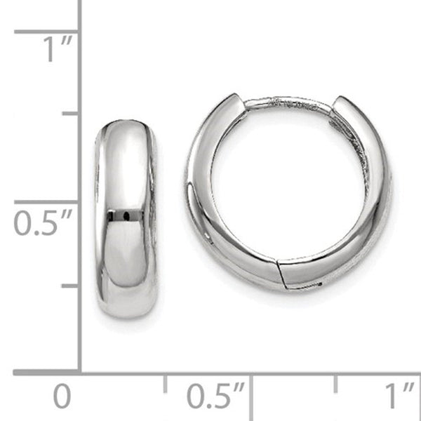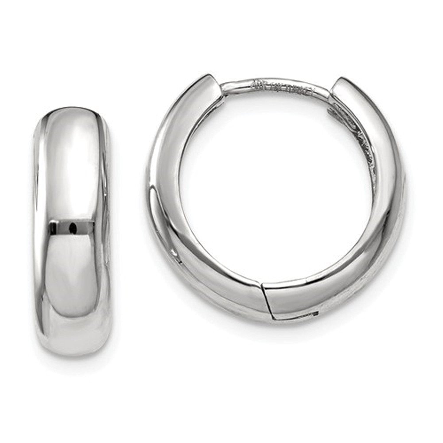 14k White Gold Polished Hinged Hoop Huggie Earrings. Measurement: 15mm (0.59 inch) x 15mm (0.59 inch) x 4mm (0.16 inch)