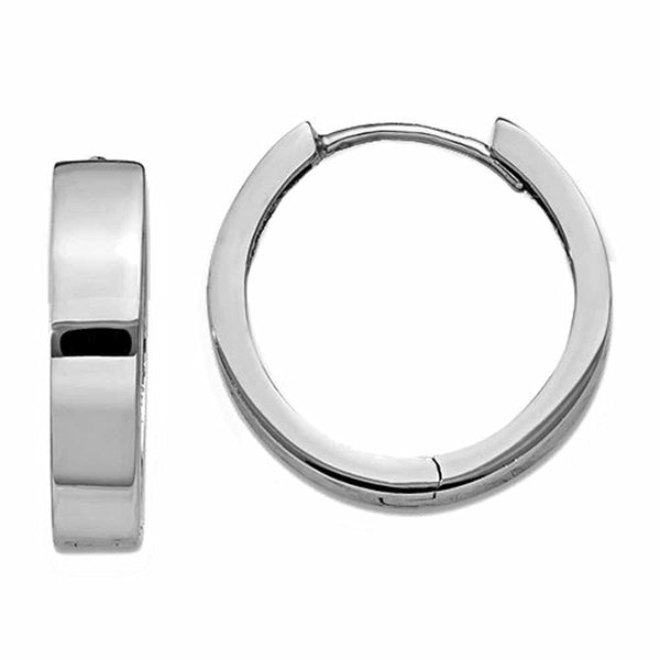 14k White Gold Polished Hinged Hoop Huggie Earrings. Measurement: 17mm (0.67 inch) x 17mm (0.67 inch) x 4mm (0.16 inch)