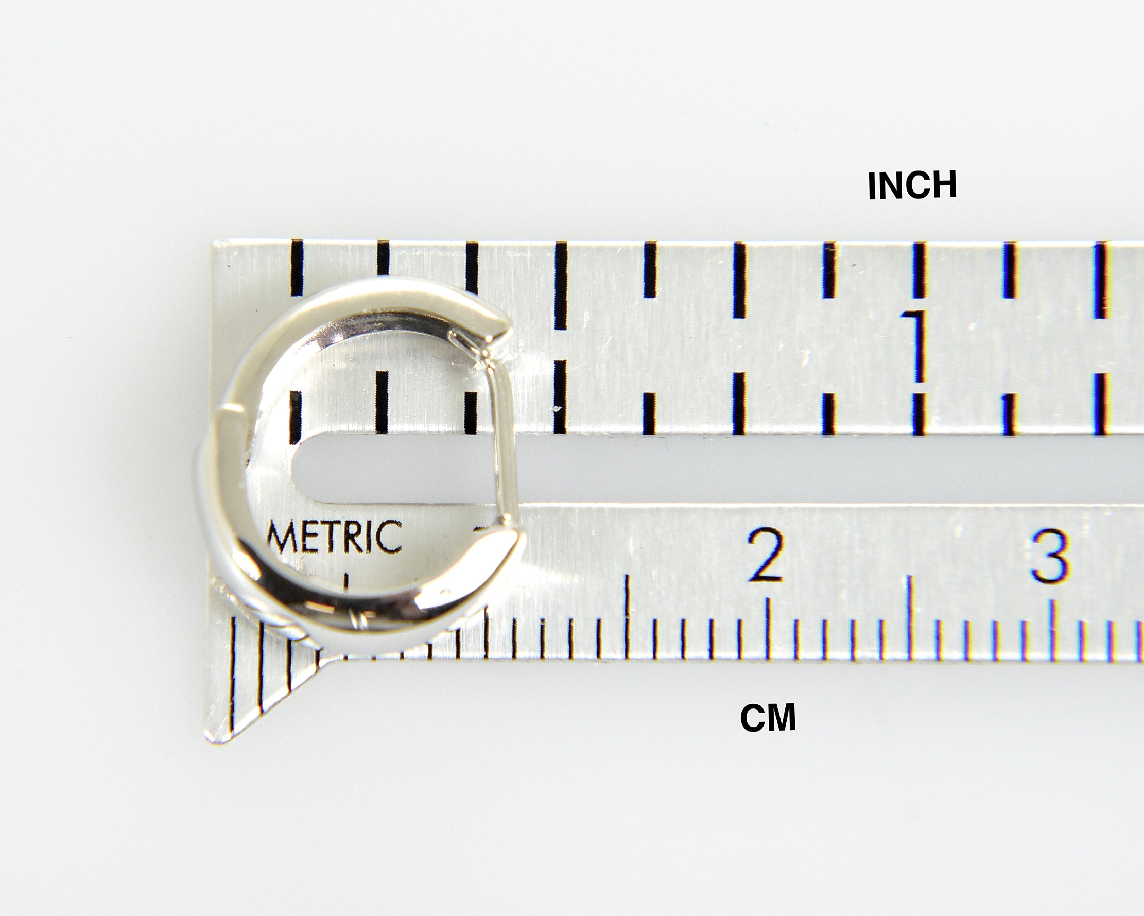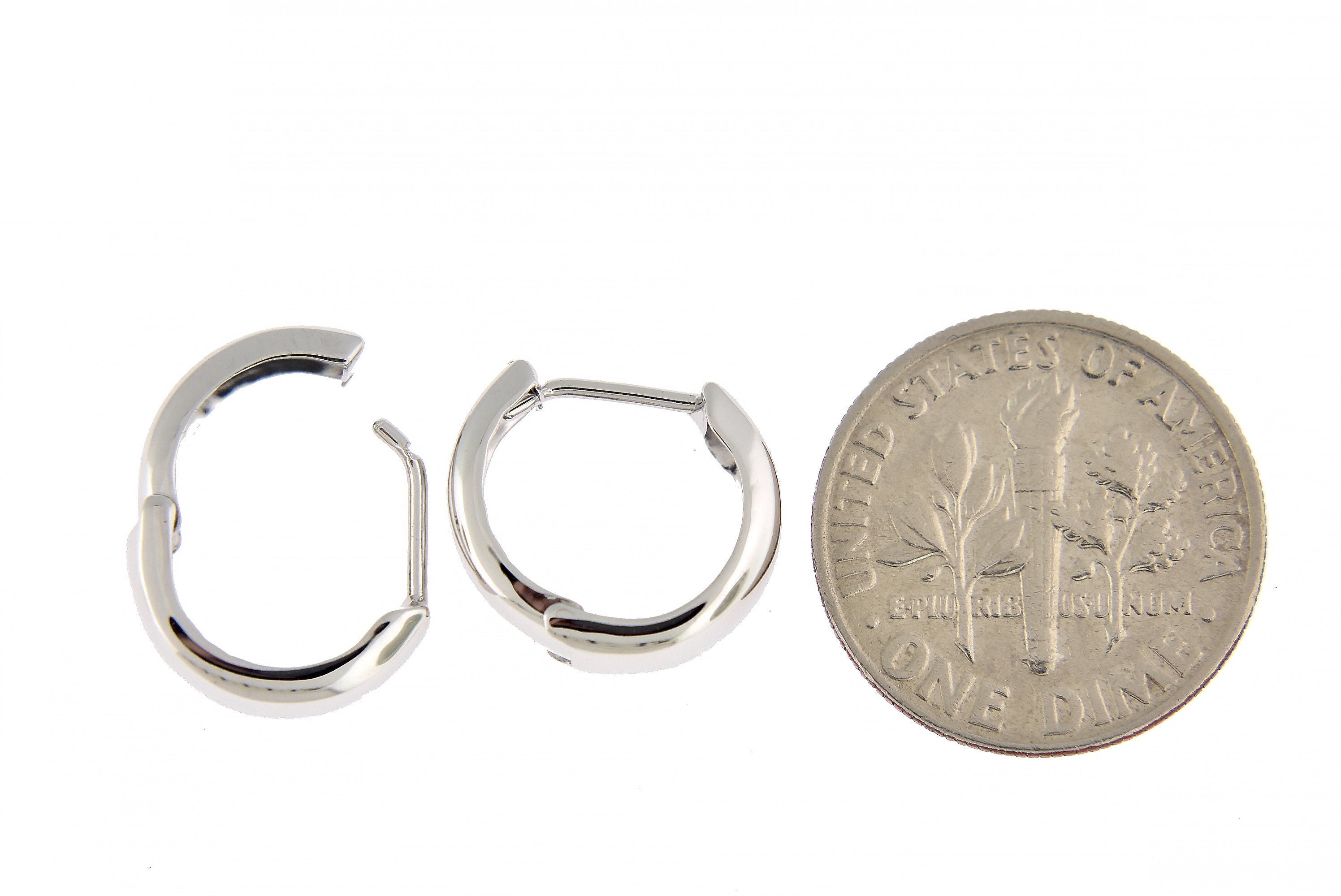 14k White Gold Polished Hinged Hoop Huggie Earrings.