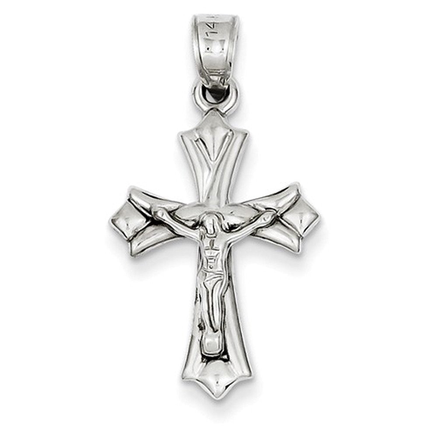 14K White Gold Crucifix Cross Hollow Pendant Charm.