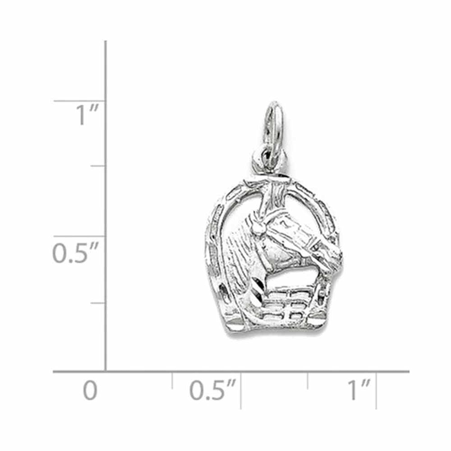 14K White Gold Horse Pony Head Horseshoe Pendant Charm.