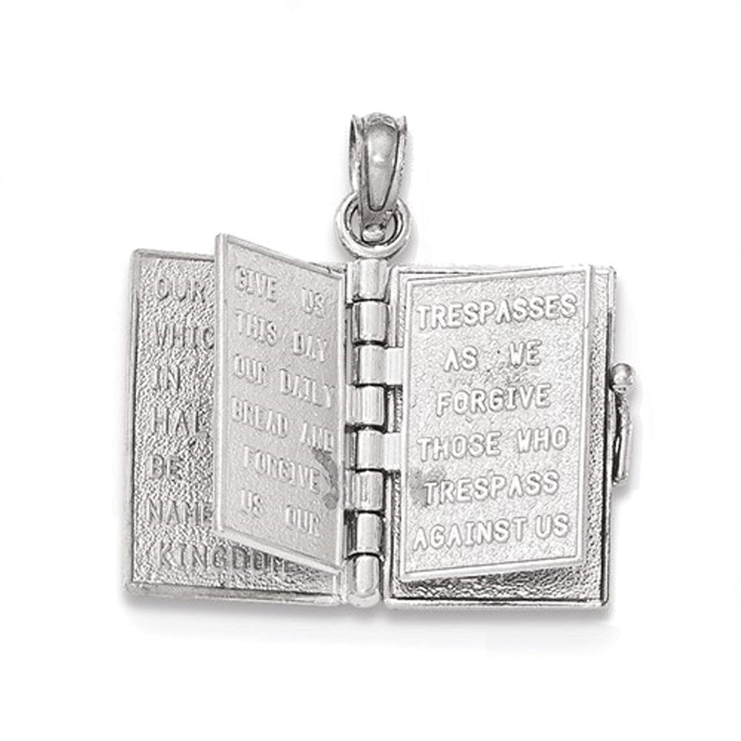 14K White Gold Lords Prayer Holy Bible Book Pendant Charm.