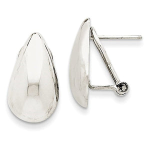 14k White Gold Polished Teardrop Omega Clip Back Earrings