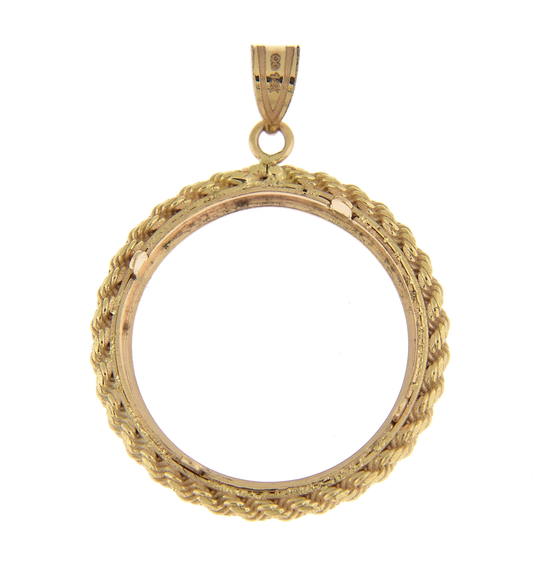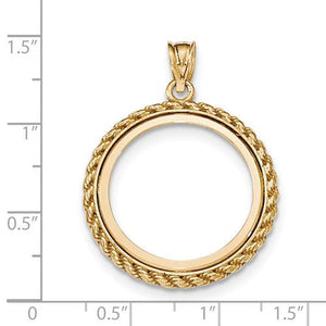 14K Yellow Gold 1/4 oz American Eagle 1/4 oz Panda US $5 Dollar Jamestown 2 Rand Coin Holder Rope Polished Prong Bezel Pendant Charm for 22mm Coins