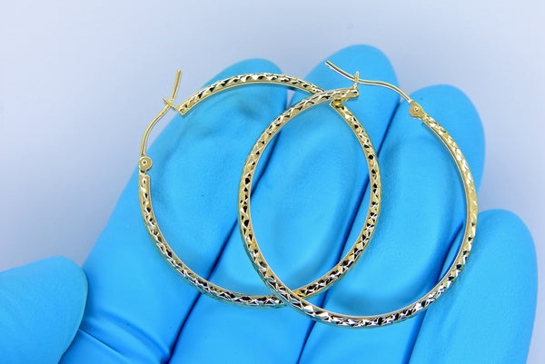 14k Yellow Gold 37mm x 2.5mm Diamond Cut Round Hoop Earrings