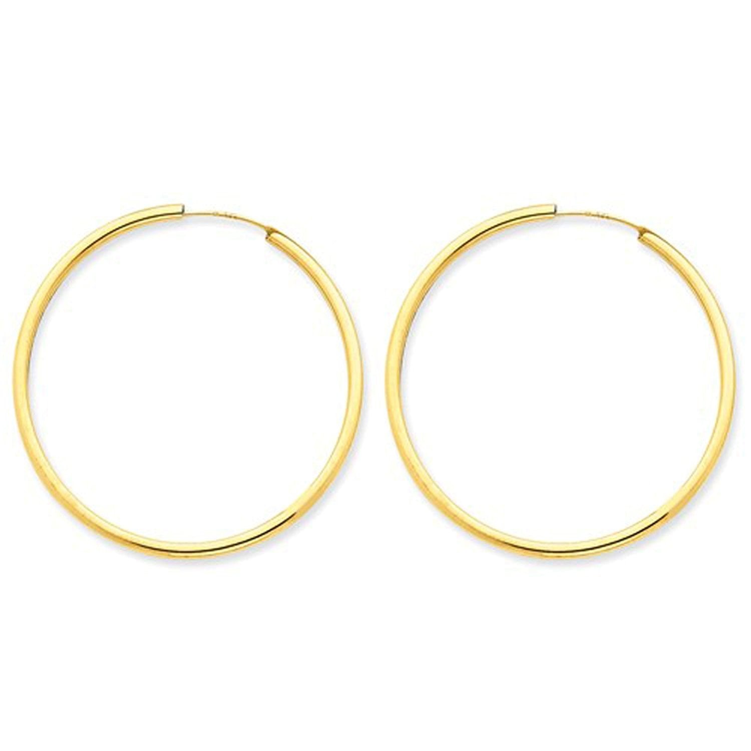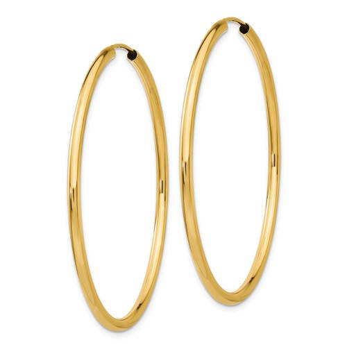 14K Yellow Gold 40mm x 2mm Round Endless Hoop Earrings