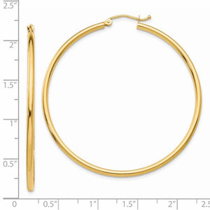 14K Yellow Gold 48mm x 2mm Lightweight Classic Round Hoop Earrings.