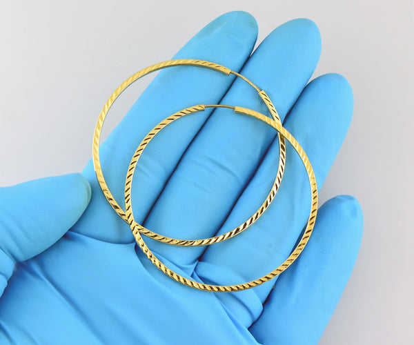14k Yellow Gold Large Diameter 50mm x 1.35mm Diamond Cut Classic Square Tube Round Endless Hoop Earrings