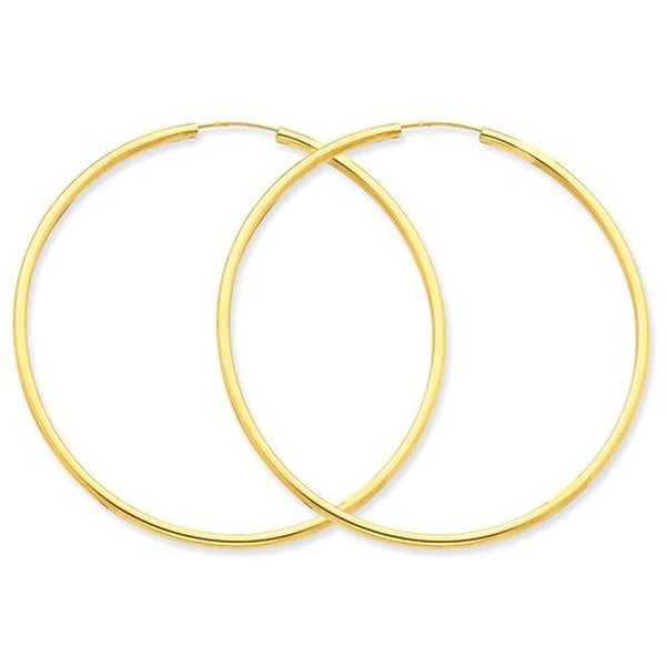 14K Yellow Gold 55mm x 2mm Round Endless Hoop Earrings