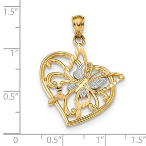 14K Yellow Gold and Rhodium Butterfly Heart Pendant Charm.