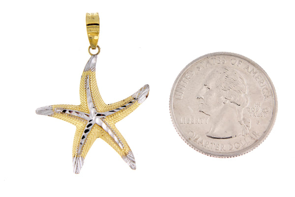 14K Yellow Gold and Rhodium Starfish Pendant Charm.