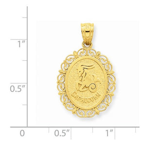 14K Yellow Gold Capricorn Zodiac Horoscope Oval Pendant Charm.