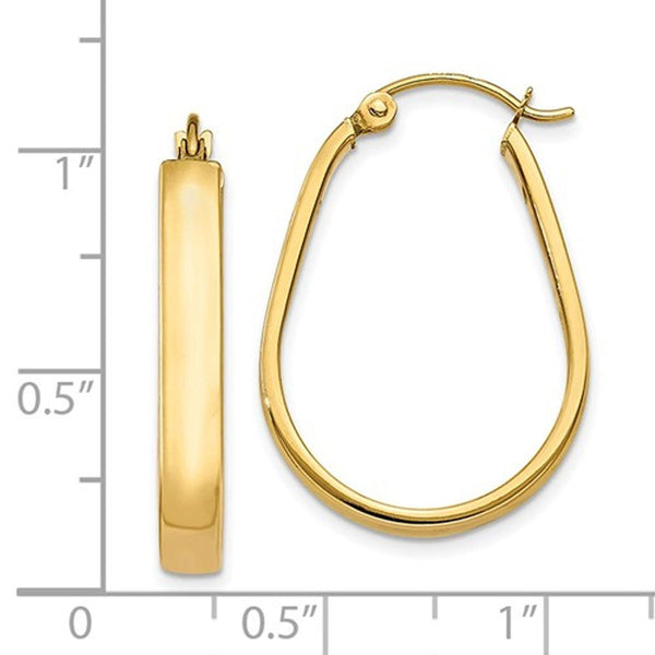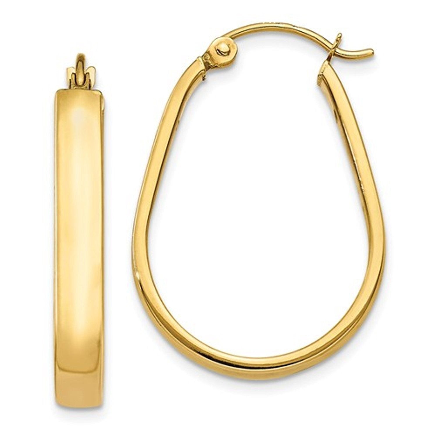 14k Yellow Gold 23mm x 18mm x 3.75mm Classic Oval Hoop Earrings. Hinged Post.
