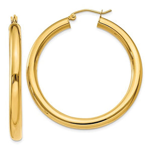14k Yellow Gold Classic Round Hoop Earrings. Measurement: 40mm (1.57 inches) x 4mm (0.16 inch)