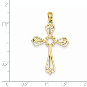 14K Yellow Gold Cross Hearts Pendant Charm.