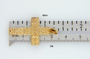 14K Yellow Gold Filigree Cross Pendant Charm.