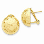 14k Yellow Gold Hammered 16mm Half Ball Omega Post Earrings