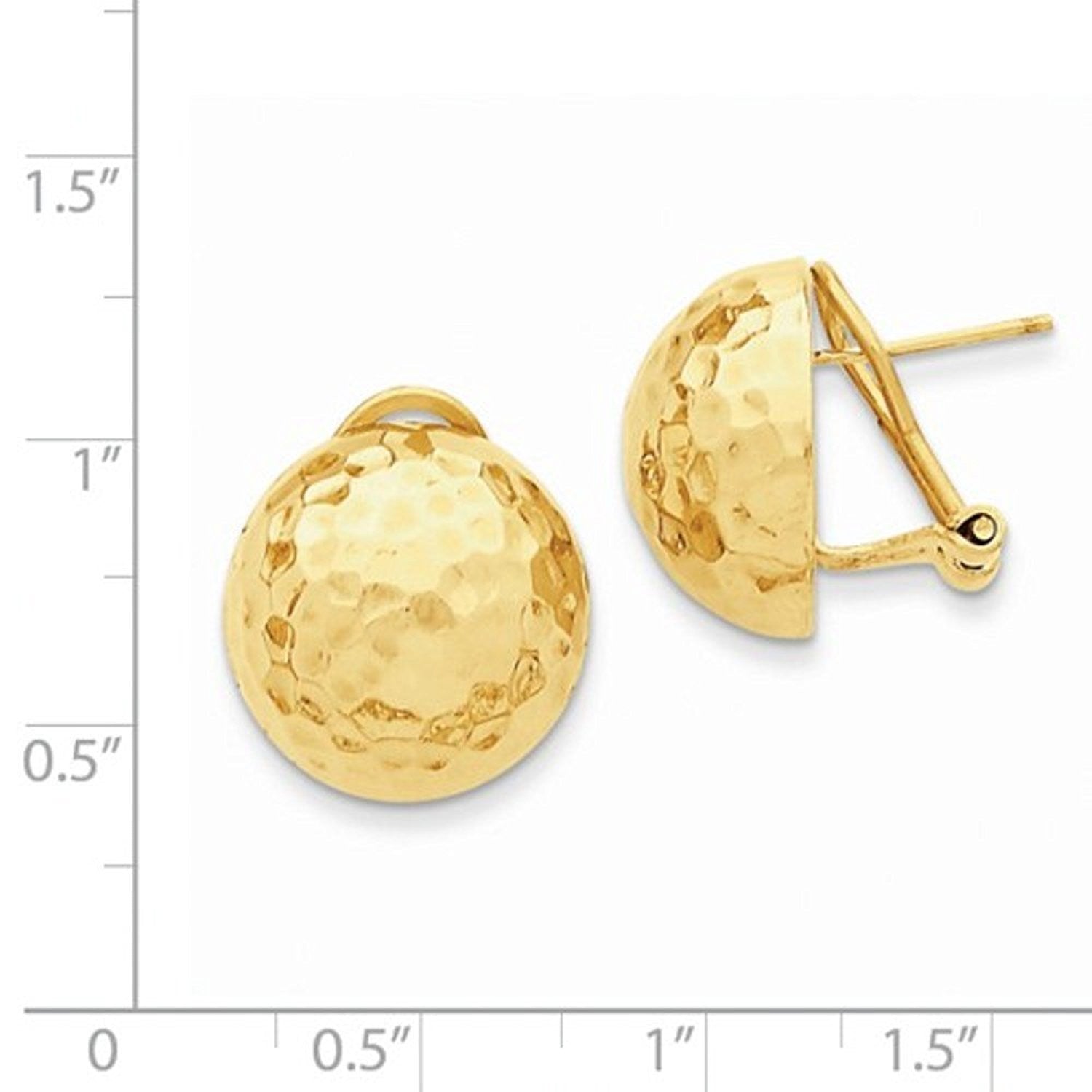 14k yellow gold hammered 16mm half ball omega post earrings