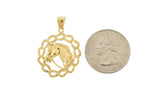 14K Yellow Gold Horse Pony Head Horseshoes Pendant Charm.