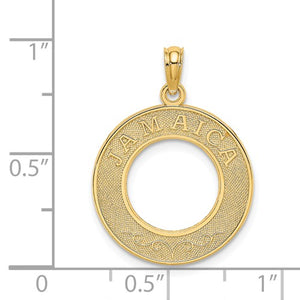 14k Yellow Gold Jamaica Island Round Circle Frame Travel Pendant Charm