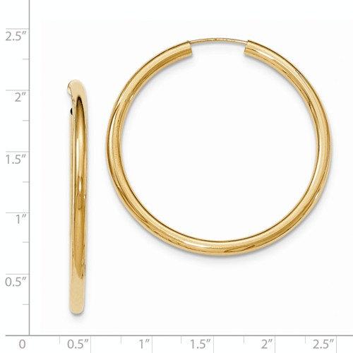 14k Yellow Gold 1.77 inches x 0.11 inch Endless Round Hoop Earrings.