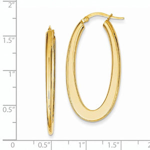 14k Yellow Gold Modern Contemporary Tapered Geometric Oval Hoop Earrings.